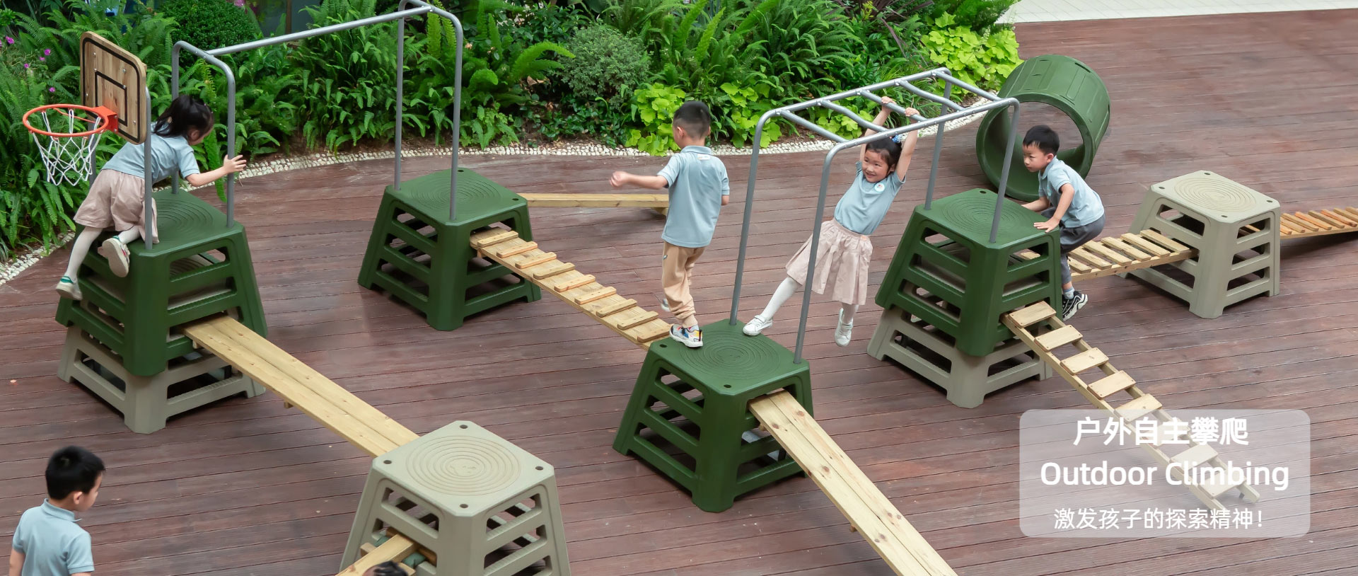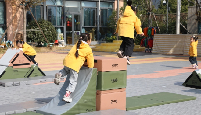 在自然与运动中,锻炼体能、勇气与协作能力对应产品:器械体操运动、有氧攀爬组合、跑酷等苏联教育家诺金娜指出"游戏是幼儿时代的忠实伙伴,游戏比任何形式的活动都容易促使幼儿的教育”。 可来赛幼教一直致力探索如何丰富幼儿在幼儿园一日生活所需的教玩具,长期关注儿童对游戏活动的兴趣, 提倡儿童在游戏的环境中自然、主动的学习。