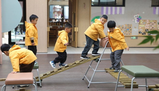 促进幼儿感知觉统合,增加手部和腿部力量,提高身体平衡能力。