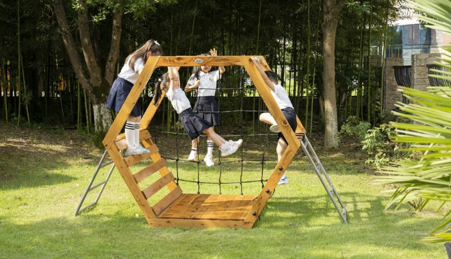 顶部设置网绳,四面皆可攀爬,可以容纳多个幼儿一起玩耍,稳固安全,攀爬高度符合幼儿身高。