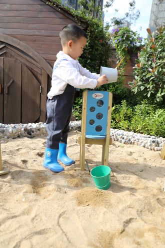 漏斗装满沙子,观察沙子缓缓落下,可与其它玩沙设施配套组合,增添玩沙乐趣。