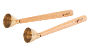 金属类乐器,演奏时左右手各拿一个,互相碰击能发出清脆明亮的声音。也可以模仿钟表的声音。