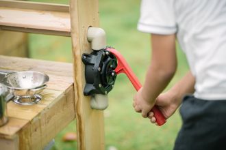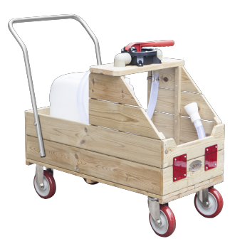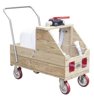 Designed especially for the garden, a watering cart is an excellent unit for portable watering. Water travels along a flexible tube so children can water the planters. This 4-wheel watering cart allows the children to move freely.