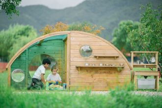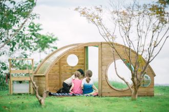 The Green House with a fully sealed grass roof will give kids hours of fun as they use their imagination to explore in a natural outdoor environment.