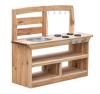 桌面可以放置菜品,进行餐前准备工作,黑板可以书写和绘画,展示今日菜谱,多层置物架可存放收纳餐具等厨房用品。